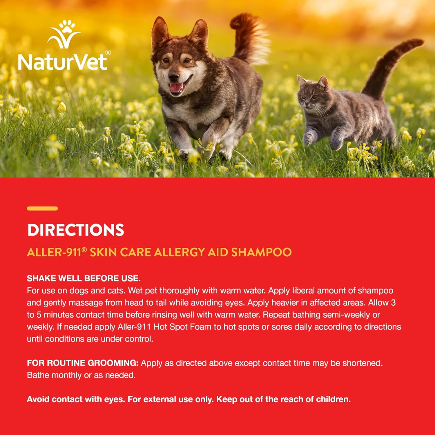 - HELP MINIMIZE ITCHING FOR CATS AND DOGS: Ensure that your furry friend can enjoy a healthy lifestyle when using this NaturVet Aller-911 Skin Care Allergy Aid Pet Shampoo With Aloe Vera. This dog shampoo and cat shampoo helps to soothe pet skin that is itchy or irritated from allergies or pet rashes.