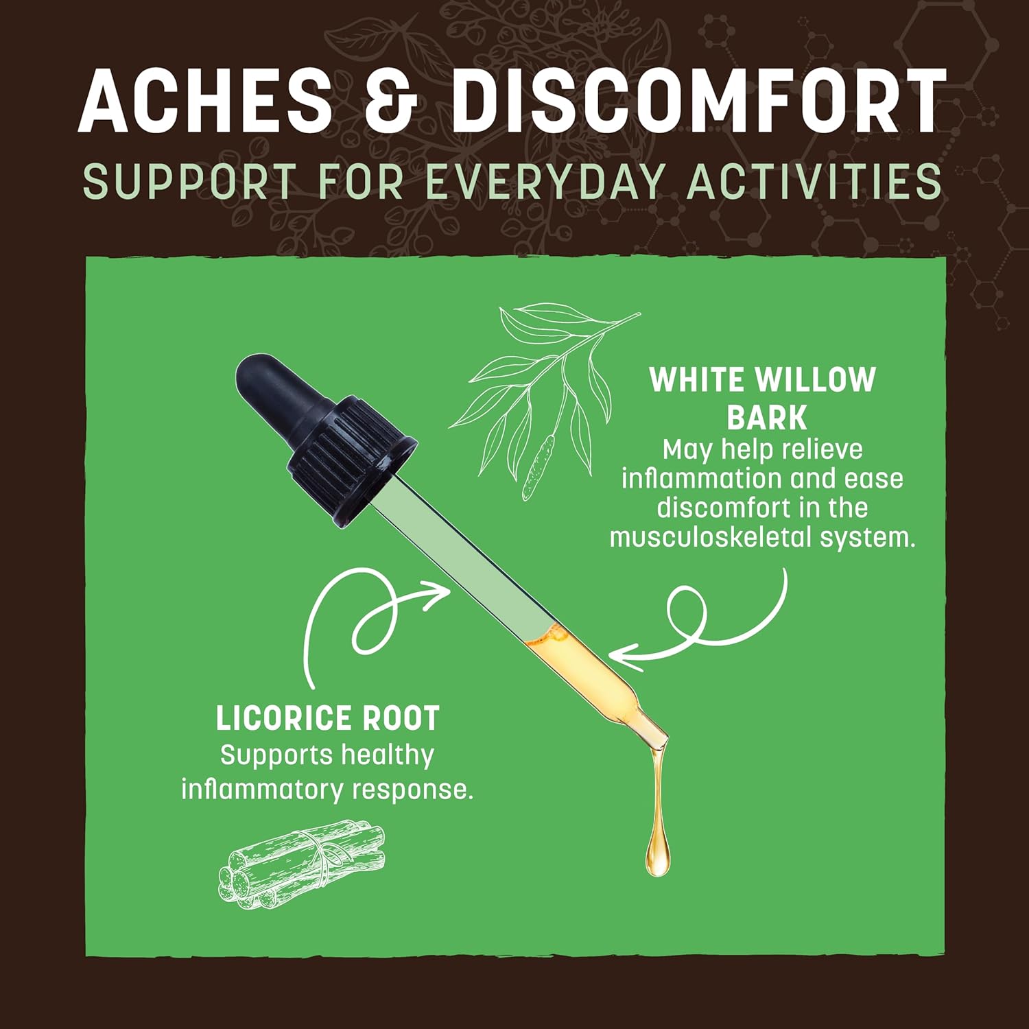 - ACHES & DISCOMFORT: Daily homeopathic drops may help soothe occasional discomfort associated with everyday activities.