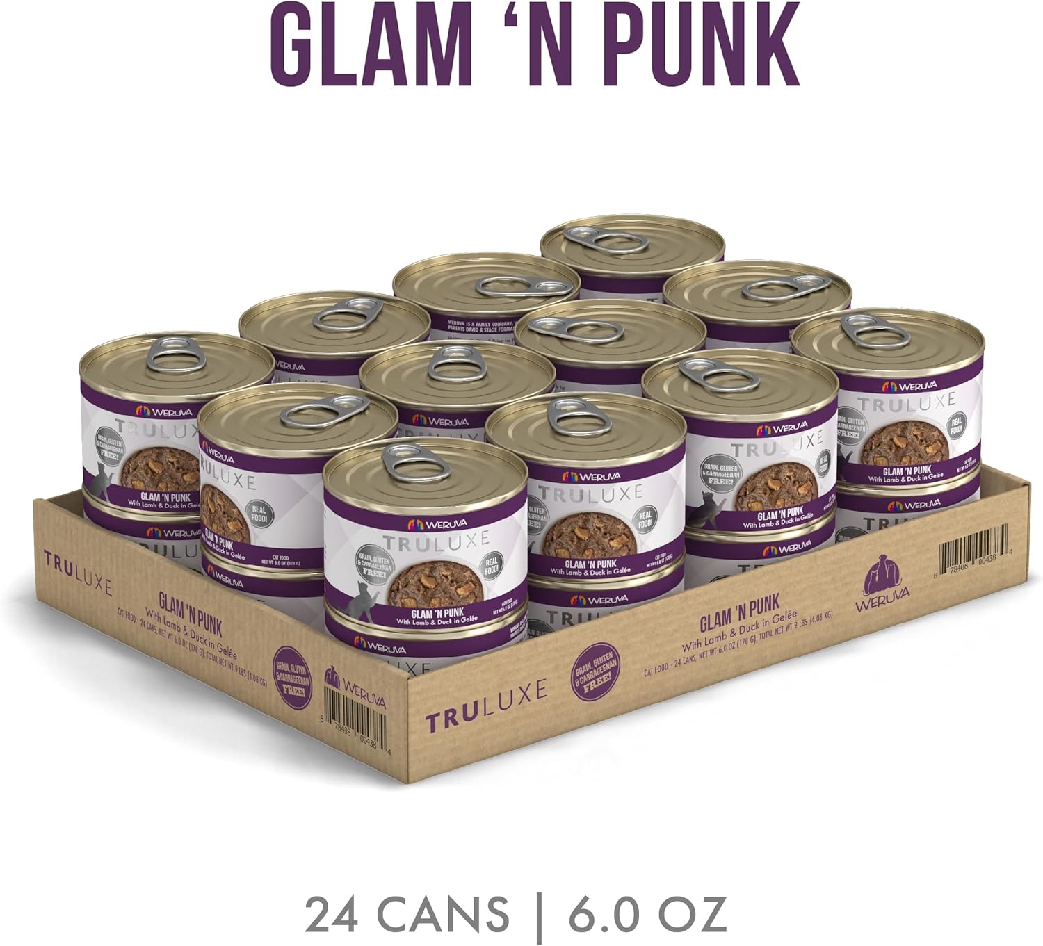 - Glam 'N Punk (6oz Can, Pack of 24) Featuring chunks of grass-fed lamb, duck, and wild-caught tuna in gelee.