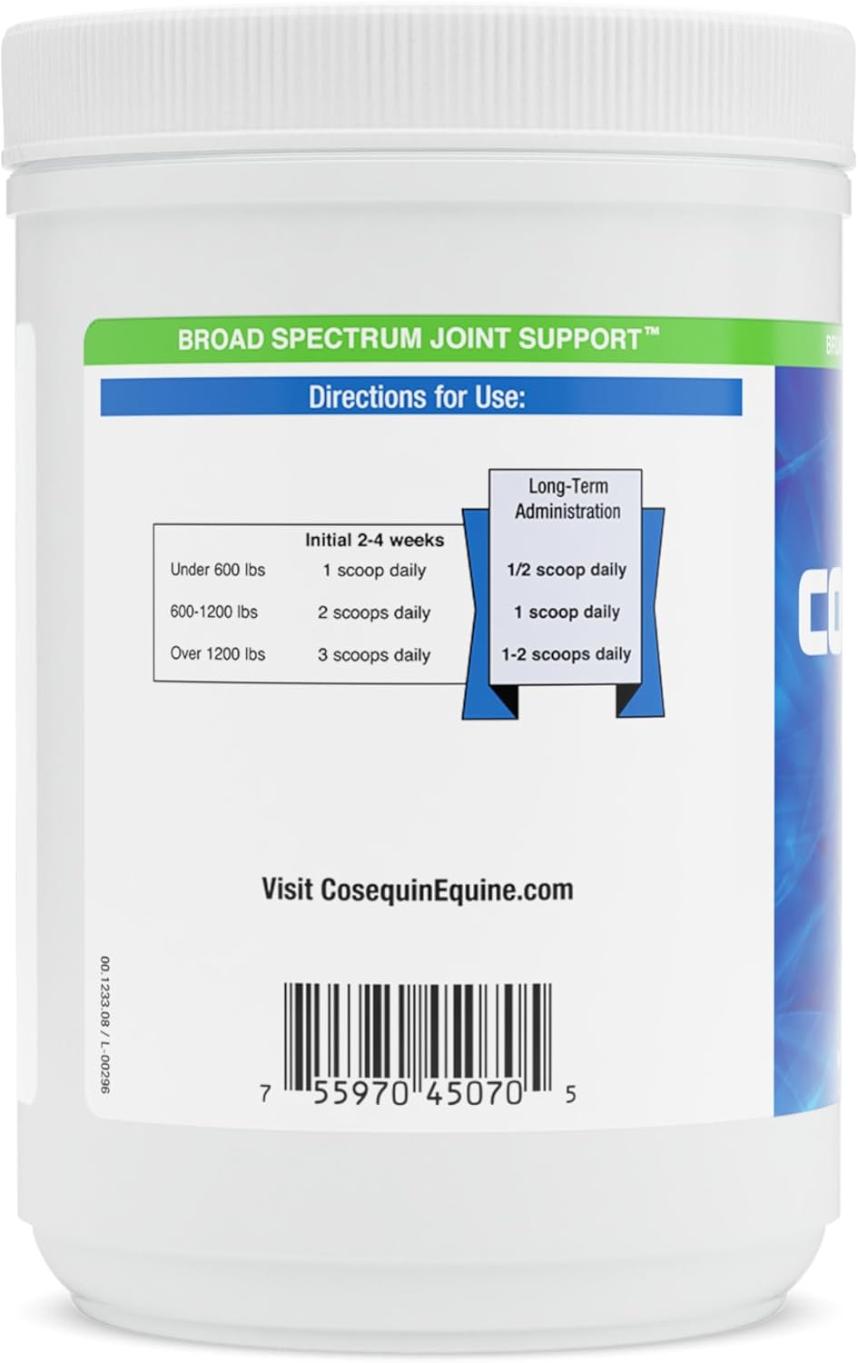 • Joint Health Support for Horses: Cosequin is the #1 veterinarian recommended joint health supplement brand*. This supplement is formulated with glucosamine, chondroitin sulfate, methylsulfonylmethane (MSM), and avocado/soybean unsaponifiables (ASU) to support joint health