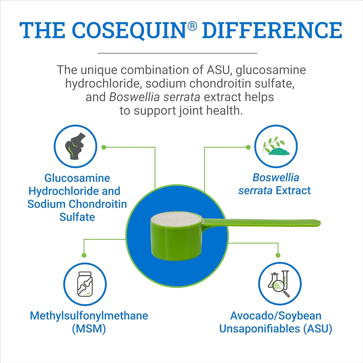• Powered by ASU: The combination of ASU, glucosamine, and chondroitin found in Cosequin ASU has been shown to be more effective supporting joint health than either glucosamine or chondroitin sulfate alone in cell culture studies