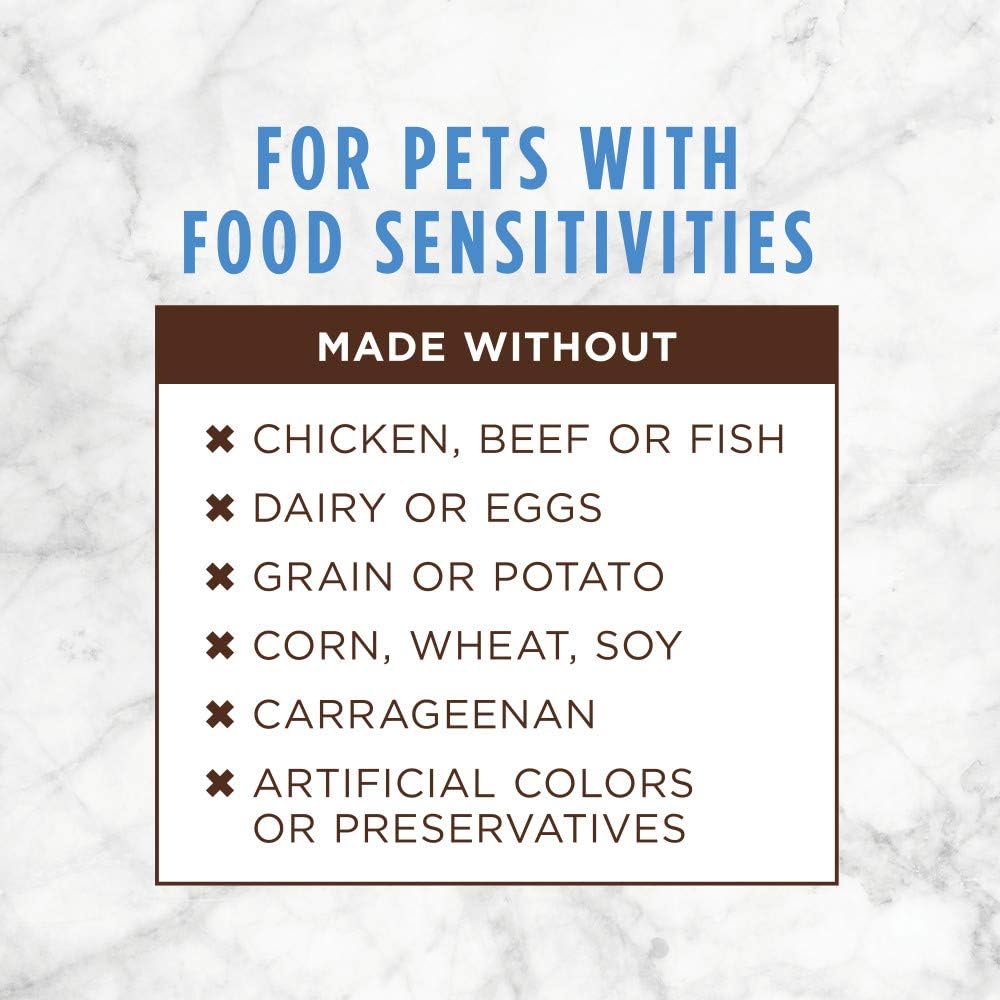 - GRAIN FREE DOG FOOD FOR DOGS WITH SENSITIVITIES: Instinct Limited Ingredient dog food is made with 1 protein & 1 vegetable. Wet dog food with no grain, dairy, eggs, chicken, beef, fish, corn, wheat, soy, carrageenan, artificial colors or preservatives.