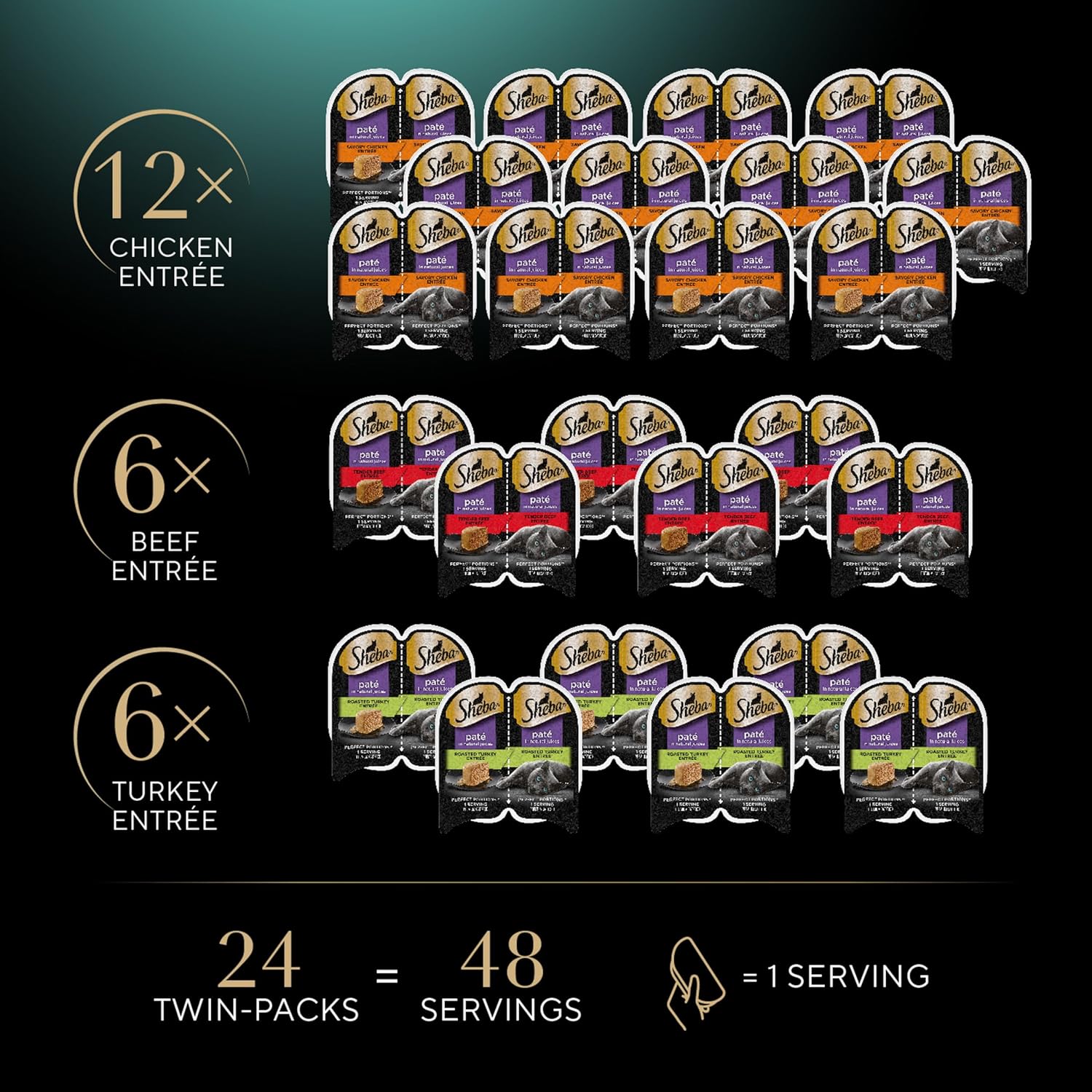 - Delicious Recipe: Sheba Perfect Portions Wet Cat Food Pate is formulated without grains, corn, or soy and contains no artificial flavors or preservatives; although trace amounts may be present due to cross-contact during manufacturing.