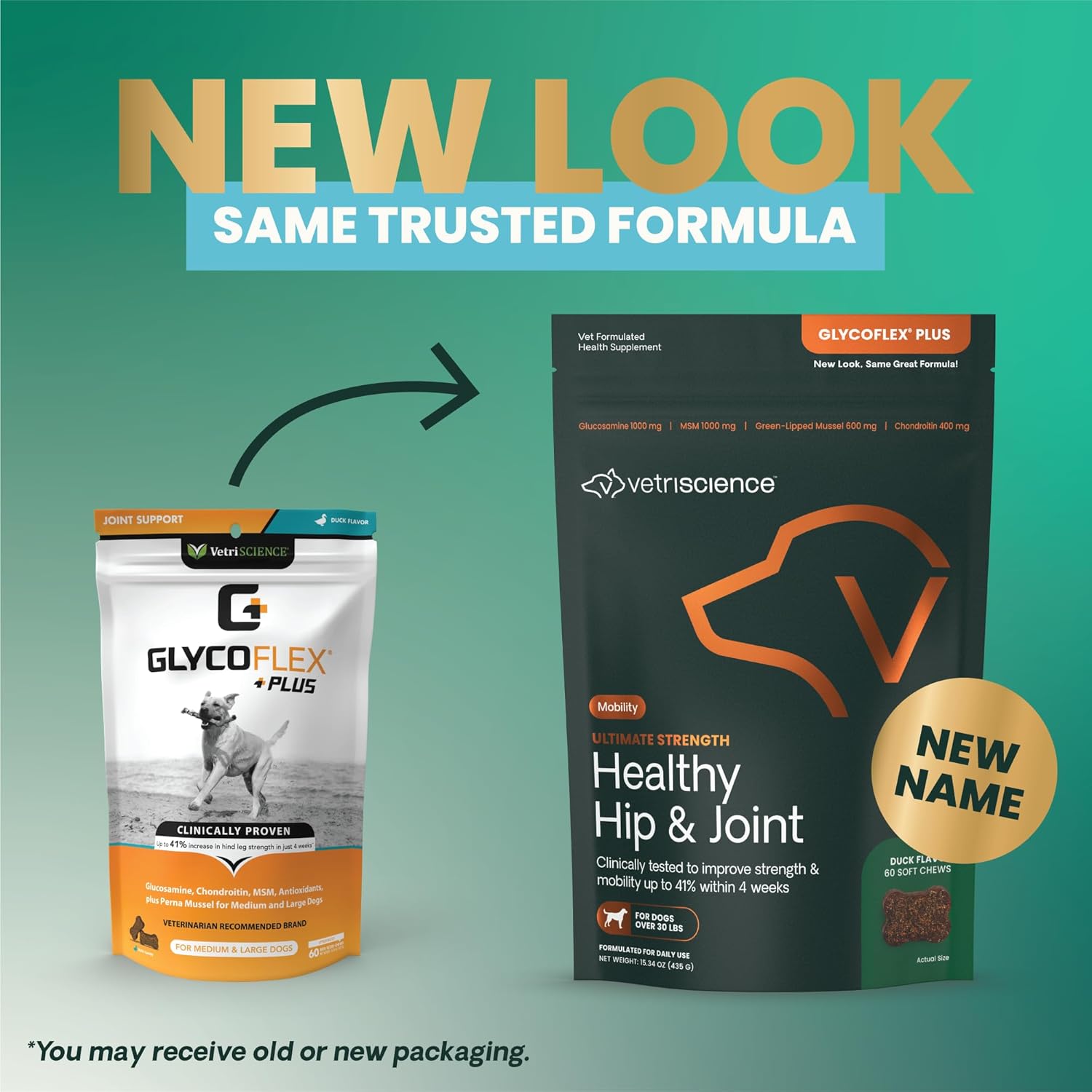 - Glucosamine for Dogs: Ultimate Strength Healthy Hip & Joint (previously GlycoFlex Plus) is our strongest hip and joint supplement for dogs, with powerful levels of active ingredients that work together to help maintain mobility, lubricate joints, and support flexibility