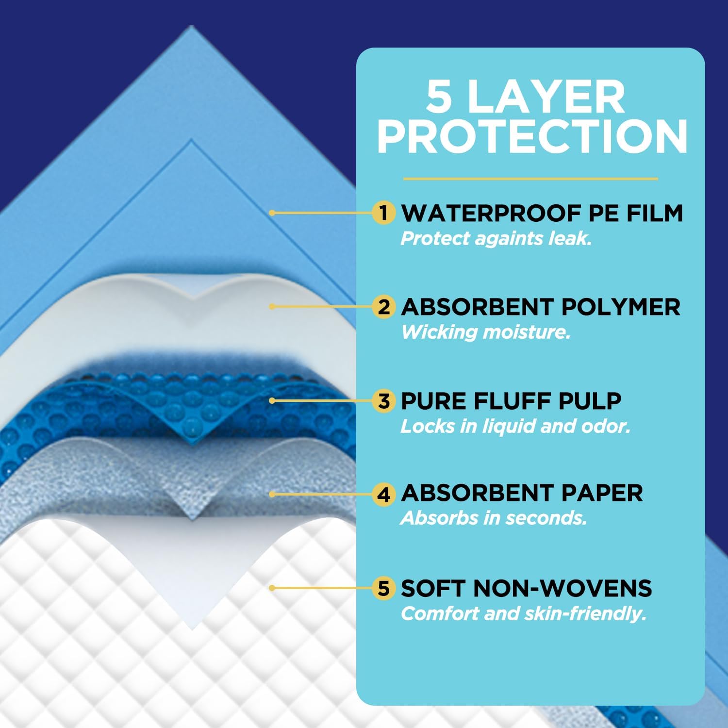 - ✔✔Non-Slip---Waterproof, Blue non-slip backsheet keep the mat firmly in place on top of sheet all night long.underpads 23x36 inches (90cm x 60cm) with maximum absorption capacity.
