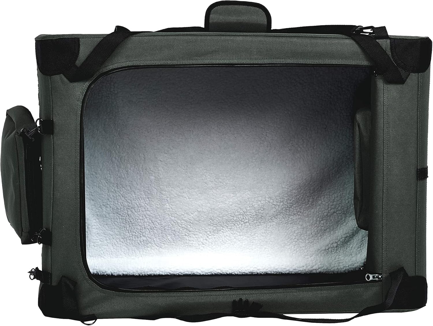 - Multiple screened panels for ventilation and visibility; machine-washable soft fleece pad for comfort; handy pockets on top and sides for storing treats, toys, and more