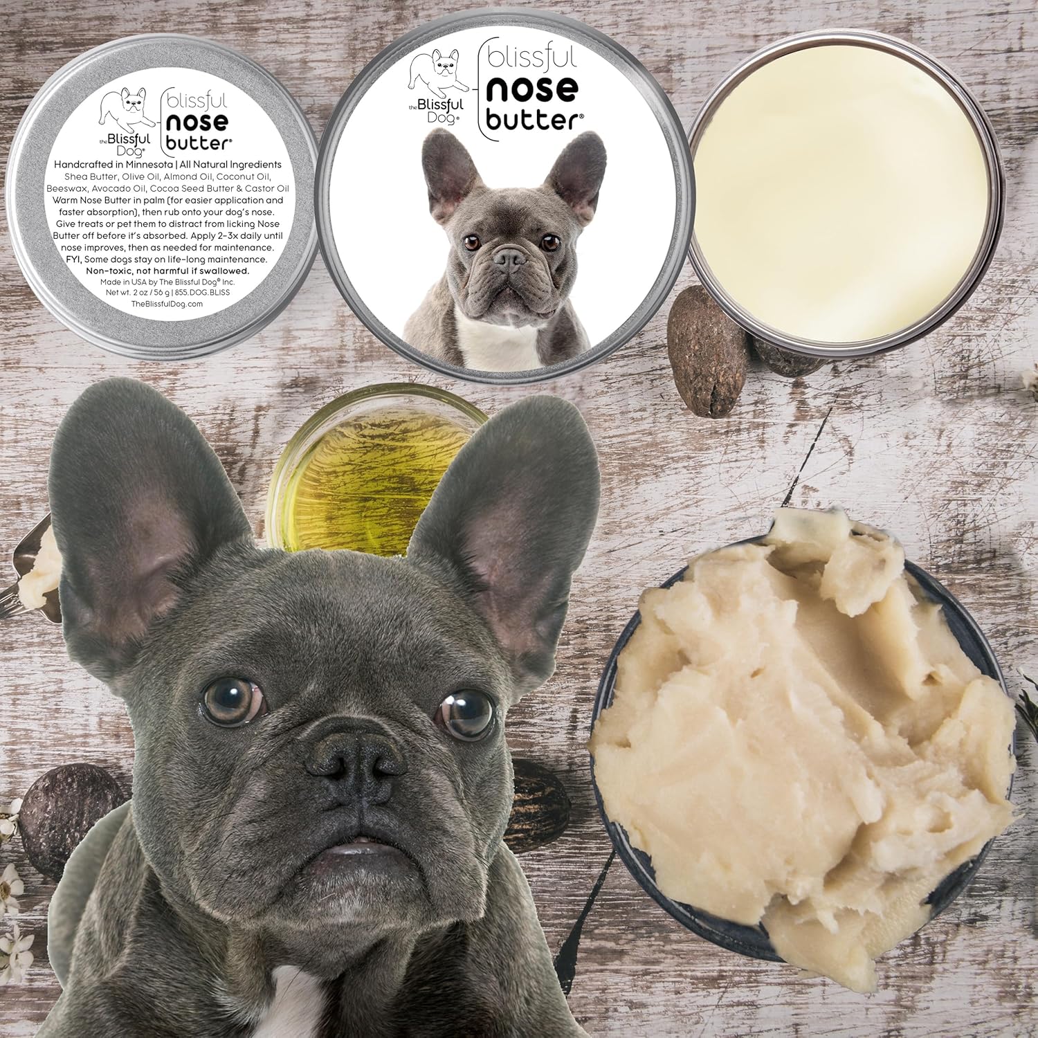 The Blissful Dog Blue French Bulldog Unscented Nose Butter, 16oz