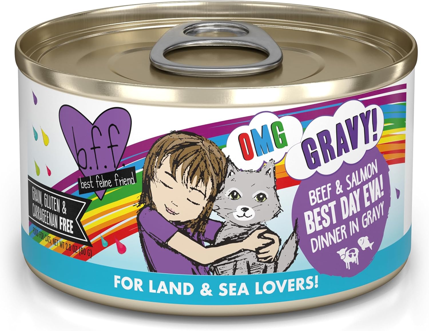 - B.F.F. OMG - Your Best Feline Friend will love these extra juicy flavors. Oh my Gravy!