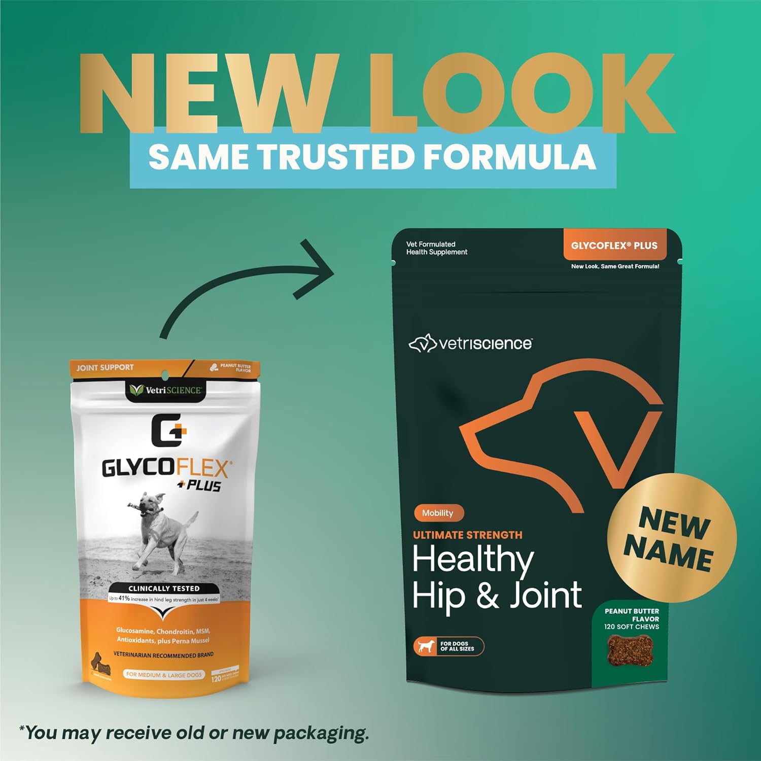 - Glucosamine for Dogs: Ultimate Strength Healthy Hip & Joint (previously GlycoFlex Plus) is our strongest hip and joint supplement for dogs, with powerful levels of active ingredients that work together to help maintain mobility, lubricate joints, and support flexibility