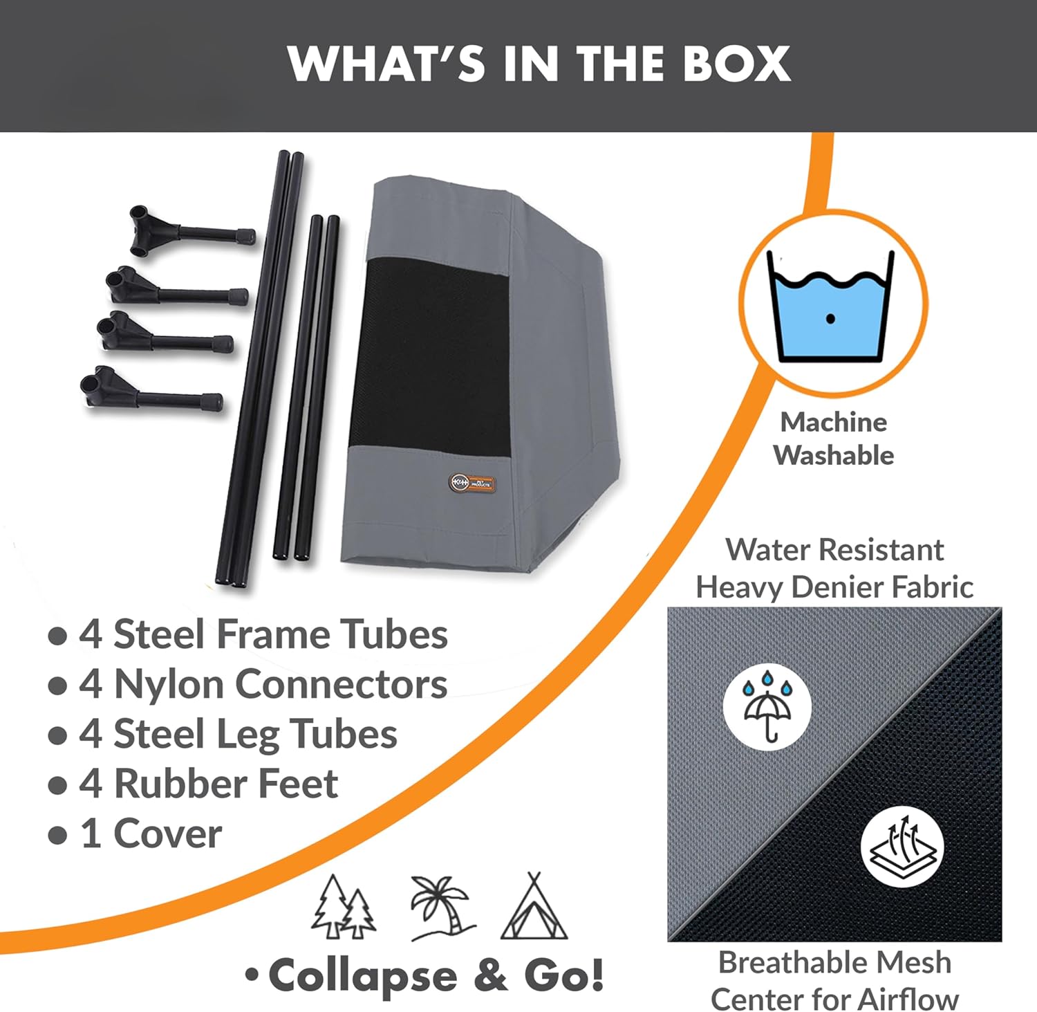 - EASY TOOL-FREE ASSEMBLY: Collapsible outdoor dog cot is easy to assemble and disassemble, no tools necessary making this portable bed great for use at home or during travel, camping, picnicking, place cot for dog training and more