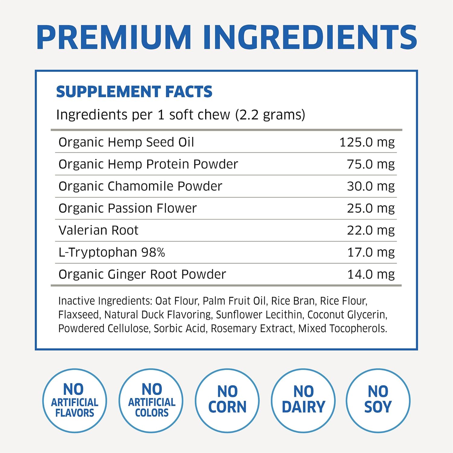 - PREMIUM CALMING AID FORMULA - Our calming chews for dogs have Passionflower, Valerian root, and L-Tryptophan; these natural soothing ingredients help promote a sense of calm and relaxation in your dog.