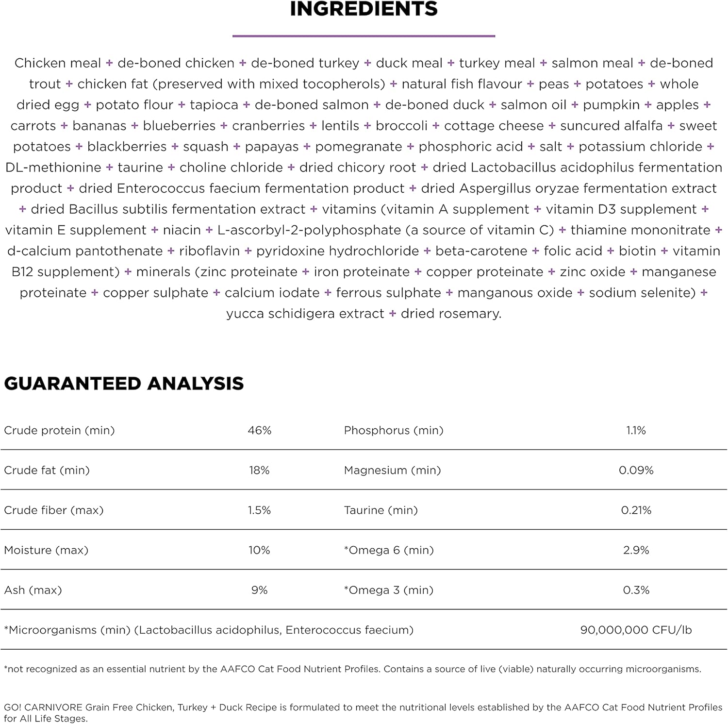 - PROTEIN-RICH FOOD TO SUPPORT STRONG, LEAN MUSCLES: The first seven ingredients and 84% of the protein in our CARNIVORE Chicken Turkey + Duck grain free cat food comes from real premium-quality meat + fish.