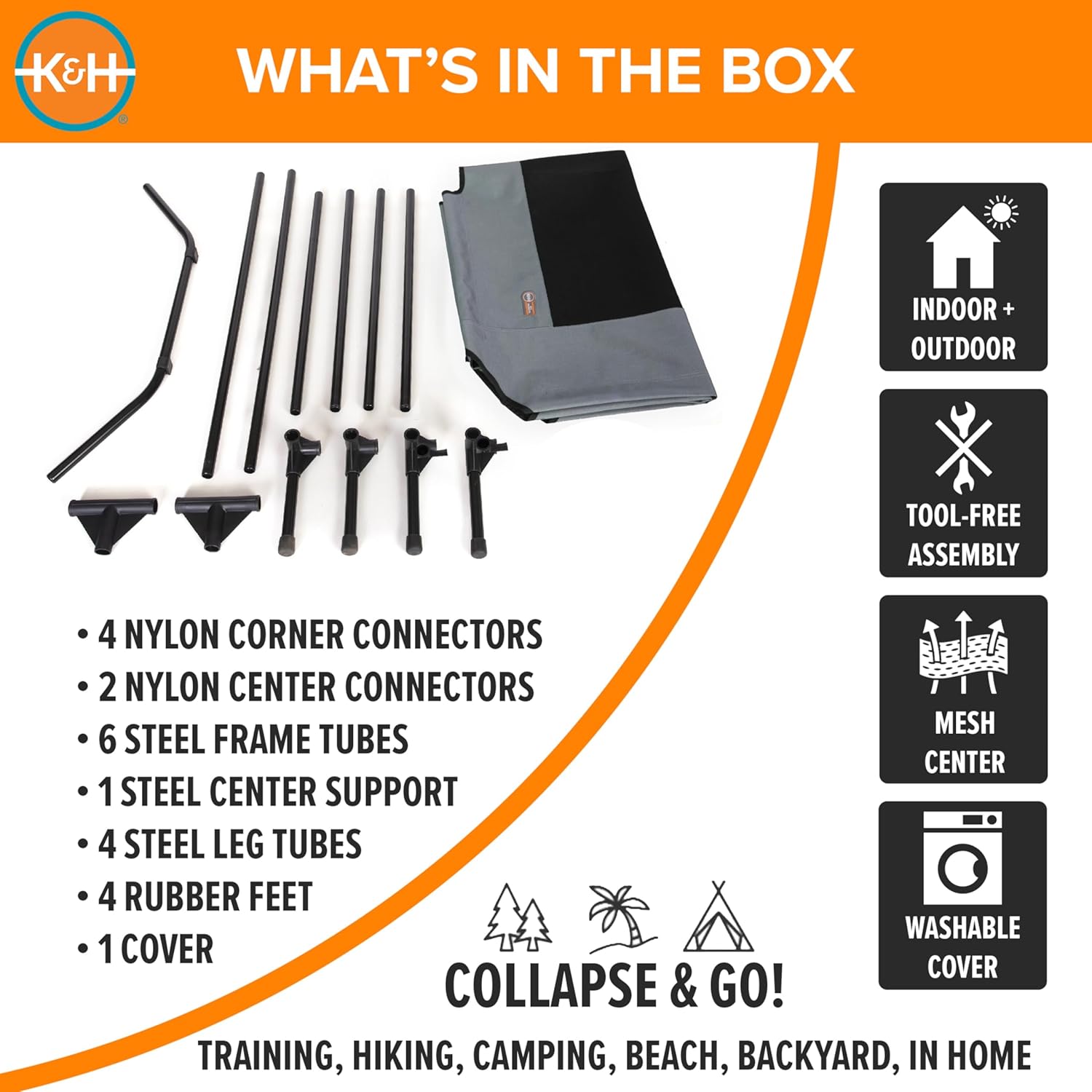 K&H Pet Products Outdoor Elevated Dog Cot, Breathable Cooling Elevated Cot Hammock Pet Bed for XL Dogs, Washable Mesh Cover, Raised Metal Frame, Collapsible, Portable - Extra-Large 50 X 32in Gray