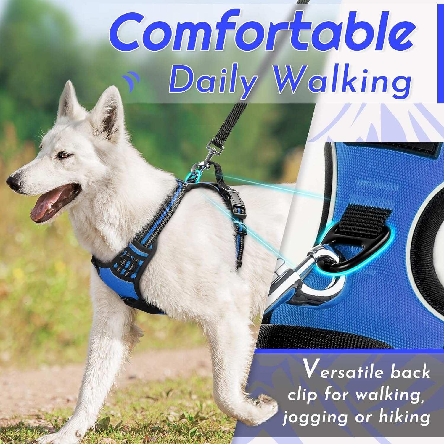 - No Pull & Better Control: Our harness features dual sturdy metal leash rings—the front chest ring minimizes pulling for effective training, while the back ring is ideal for casual walks, jogging, or hiking—ensuring superior handling in any situation