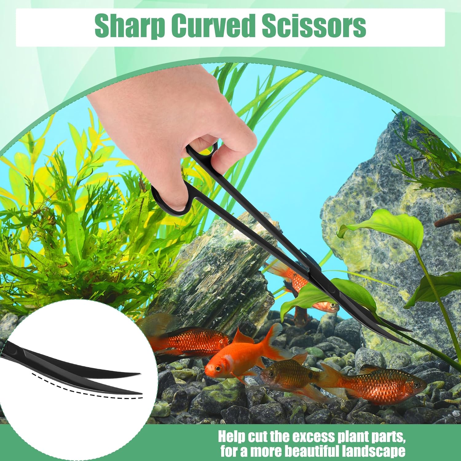 - 【4 in 1 Aquascape Tools Kits】: Aquarium tank aquascape tools kits including 1*10.5" curved scissors, 1*10" straight tweezers, 1*10" curved tweezers, 1*12.5" sand spatula, one kit, multi-function.