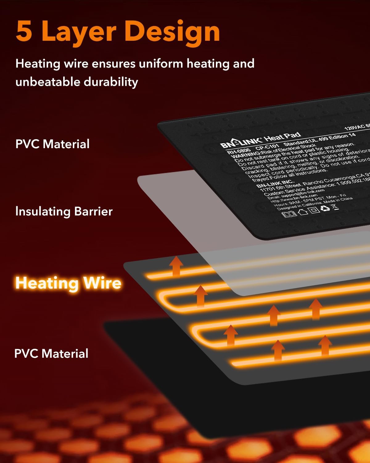 - ENERGY EFFICIENT AND SPACE-SAVING: The BN-LINK Heating Pad is both compact and packs a punch. The heating wire and insulation allows the mat to reach the desired temperatures within minutes yet only uses 16 Watts to help you save on electricity costs.