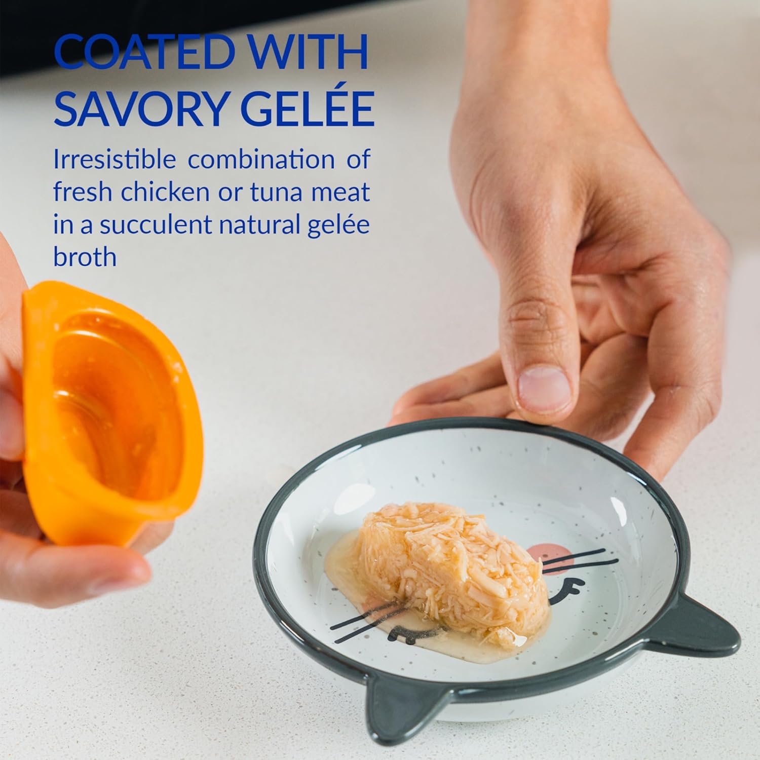 • TWICE THE TOPPERS: Twins are two single serve portions of shredded chicken suspended in a savory chicken broth gelée. Simply break apart, pull back the lid and use as a topper on wet or dry cat food or as a side dish/complement to their meal