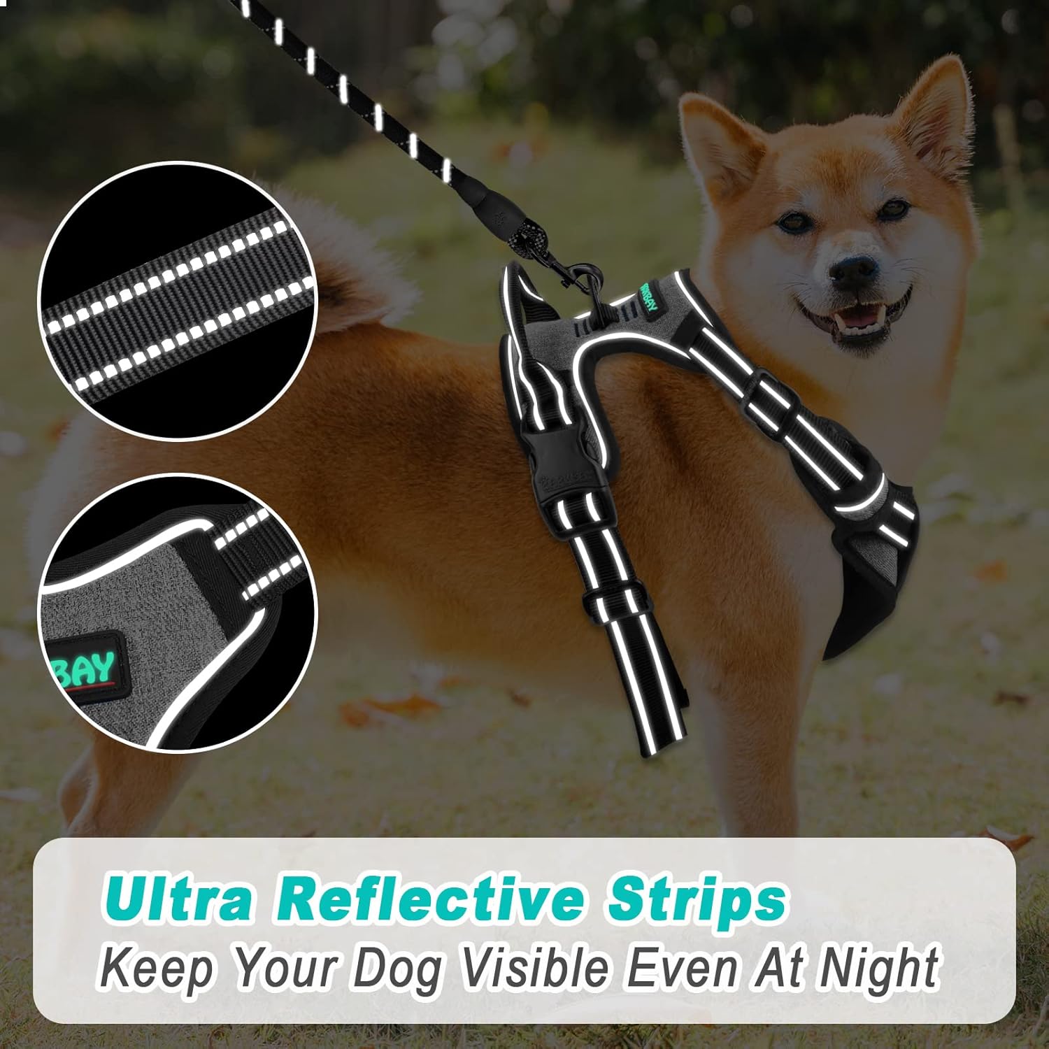 - LUMINOUS REFLECTIVE STRIPS to keep your dog safe and visible at night.