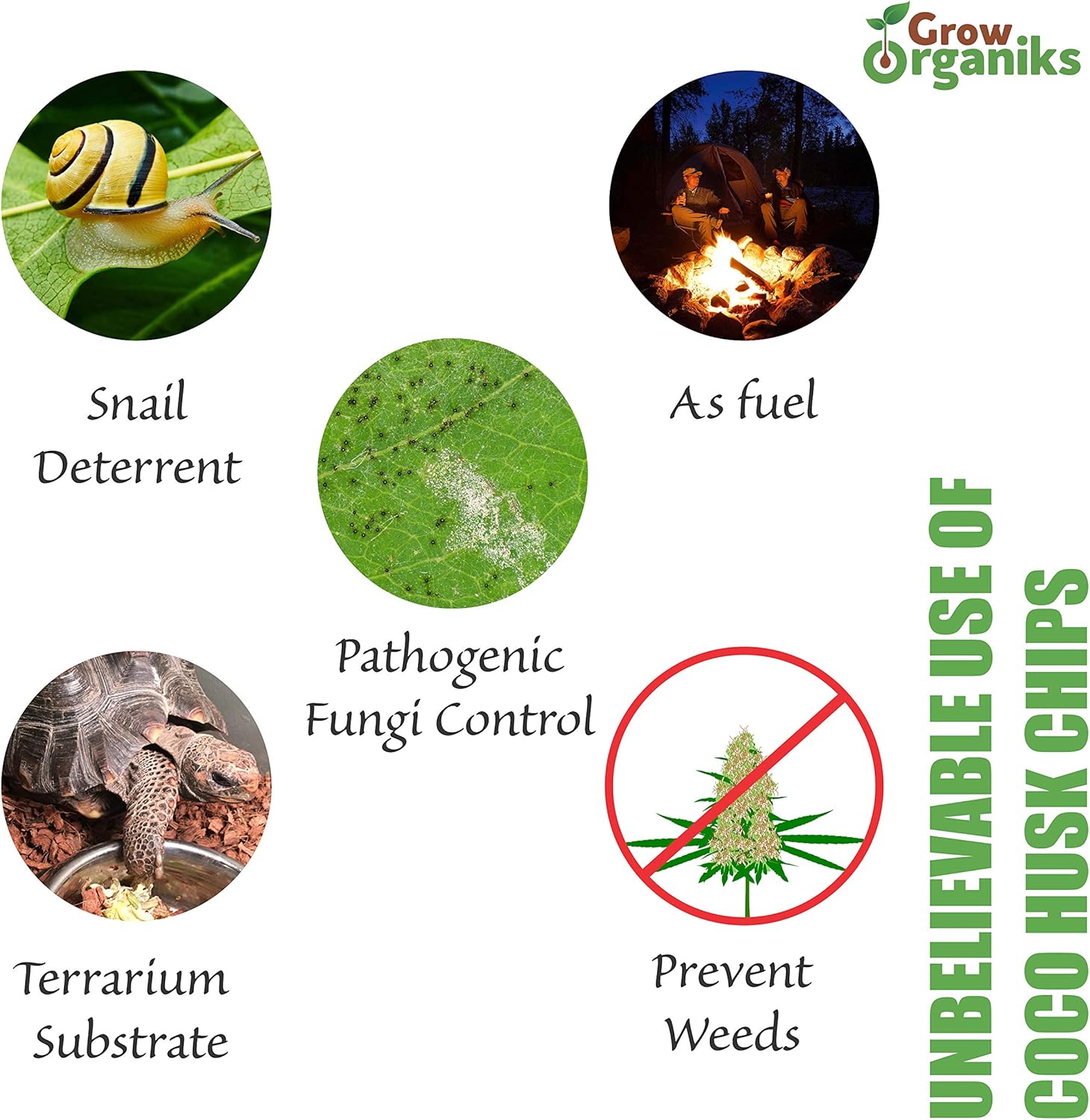 - [🐍100% Natural & Biodegradable] Grow Organiks Coconut Husk chips are cut pieces of the husk of the coconut compressed into 11 lbs.Coconut husks are a sustainable alternative to other mulches. Our Organic coco chips are best suitable for growing plants, and also perfect for reptile substrate.