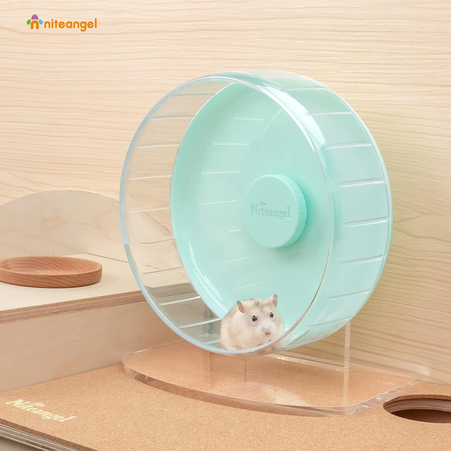 • Super Silent 8.2-Inch Hamster Wheel - Niteangel Silent Spinner Hamster wheel designed with Dual Ball bearings, it brings your little hamster endless running happiness, also brings you a quiet night even if your hamster on the race track to run & hamster wheel is spinning
