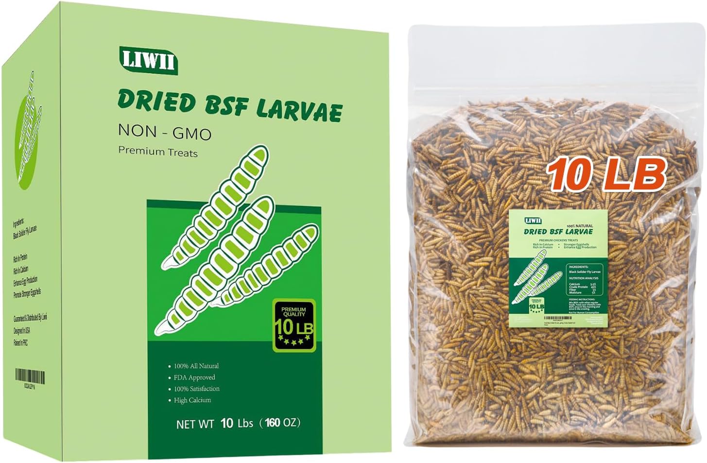 - Bulk Pack - 160oz Total, Value Pack. Dried Black Soldier Fly Larvae is a great value and a convenient alternative to live mealworms or live worms. Best food for Chickens feed, Duck, Bird, Hamster, Reptile, Crested Gecko Food, Bearded Dragon Food, and more!
