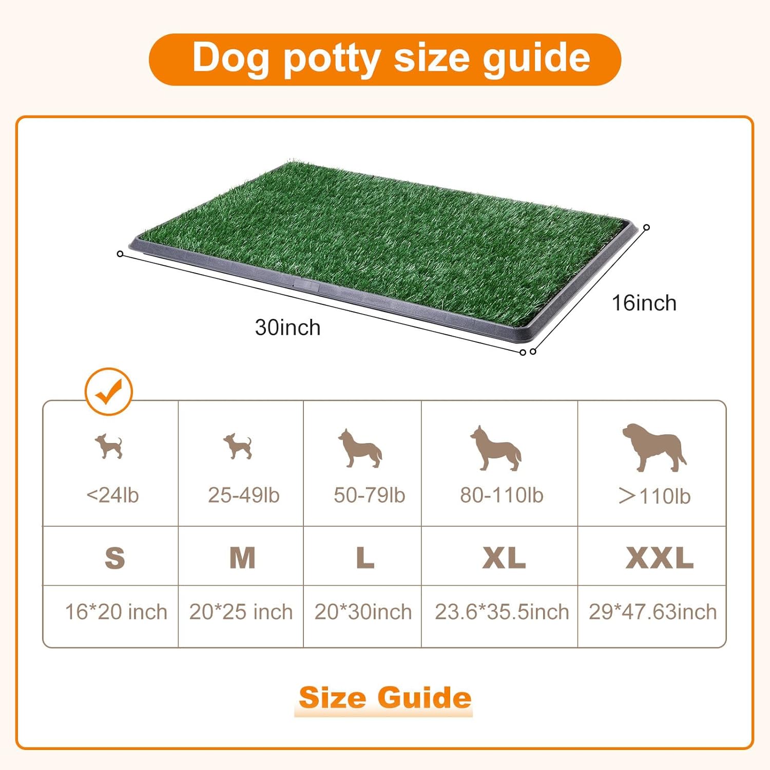 - COME WITH TWO PADS: Loobani dog indoor potty comes with two fake grass mats, you can replace another one when cleaning. Loobani artificial grass mat offers that really feel that your dog needs to do his or her business. The dog potty is available in four different sizes, which works well for most dogs, even larger breeds