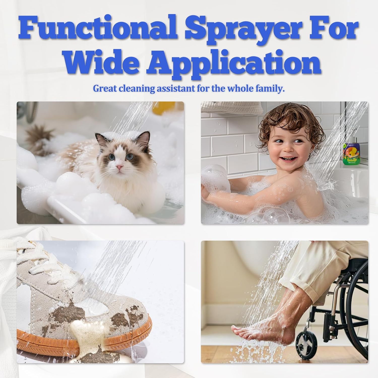 - Easy Control Handheld Sprayer: Designed with an easy-grip ON/OFF control lever, this functional handheld pet sprayer provides strong flow and gentle soothing water jetting, adjustable jetting modes are suitable for different showering needs, comfortable and mild for bathing small pets and babies without scaring them. The lever allows to adjust water from full on to full off, convenient to control with one hand when in shampoo. Premium sturdy ABS plastic resists high temperature, burst-proof.