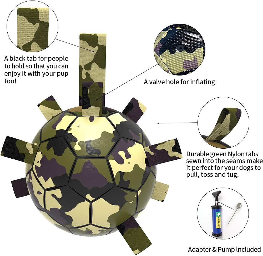 - 🐶WHAT YOU GET:There are a needle point adapter, a pump and a dog soccer balls. The balls will arrive in an uninitiated state, please refer to the instruction manual and use the infiltrator provided in the package. It is easy and safe to operate.