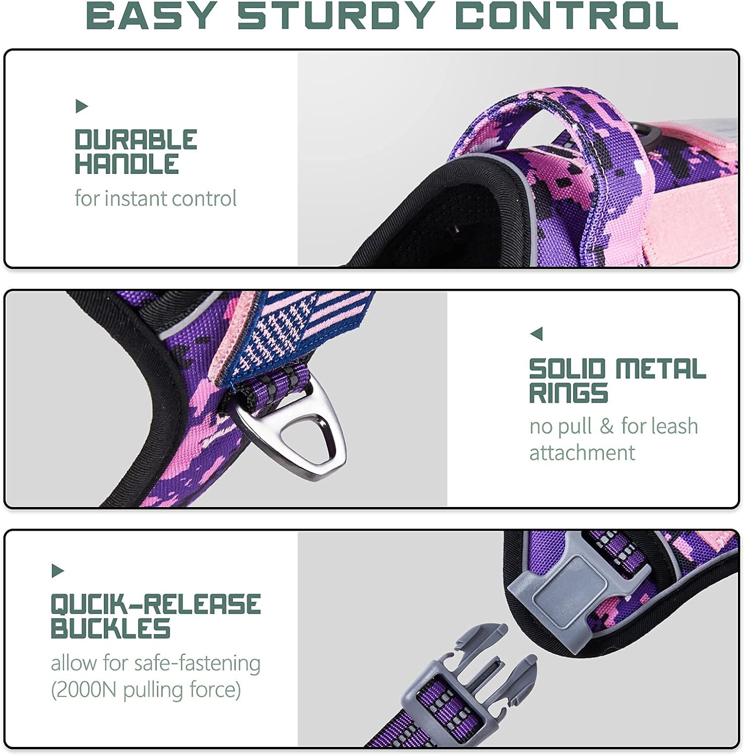 - 🐾COMFTY & SAFE DESIGN: Be the best partner of your pets.🐾 The Bumbin dog harness helps you walk, run and play with your dog together. The arc of the harness back is extended to ensure comfort without scratching the dog’s skin. The reflective design all around the dog harness will keep you and your dog safe while going for a walk even at night.