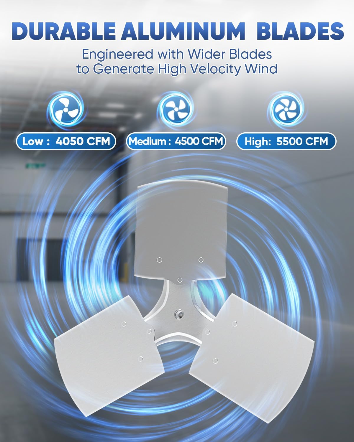 - Powerful Airflow for Large Spaces. The KEN BROWN 20 Inch Industrial Oscillating Wall Mount Fan delivers a maximum airflow of up to 5500 CFM, making it ideal for cooling large areas such as garages, workshops, and outdoor patios. Its robust performance ensures efficient air circulation in industrial environments.