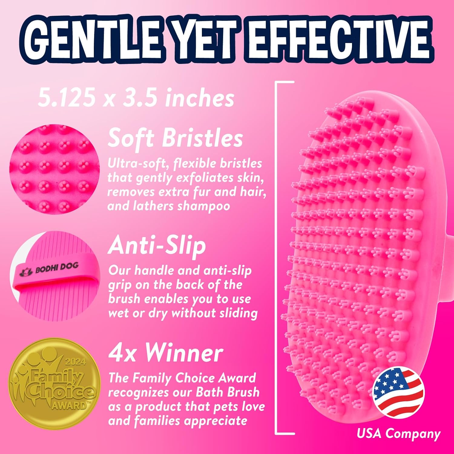 - EFFECTIVE YET GENTLE: The soft rubber tips quickly scrub away dead skin and loose fur making it an excellent pet brush for grooming and bathing. It leaves pet skin clean and helps restore sheen and luster to the coat. Our handheld grooming tool won’t pull on hair making it a perfect brush for pets with sensitive skin. Our dog bath brush also increases the effectiveness of shampoo lathering, allowing less product to go further. Achieve a deeper clean than shampooing alone.