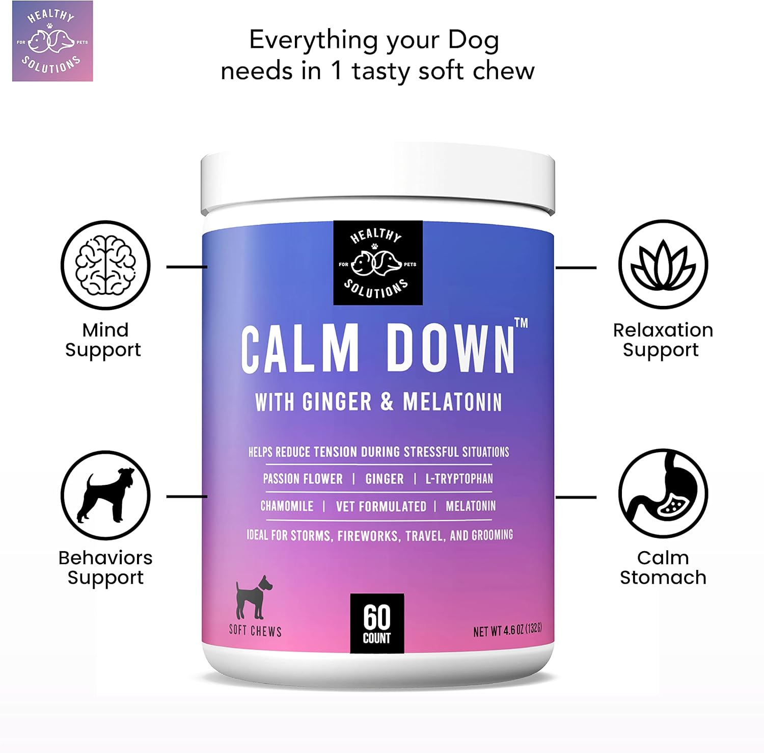 - 🗸 VETERINARIAN FORMULATED -- with Melatonin, Chamomile, Passion Flower, Thiamine, L-Tryptophan, and Ginger to help soothe sensitive stomaches.