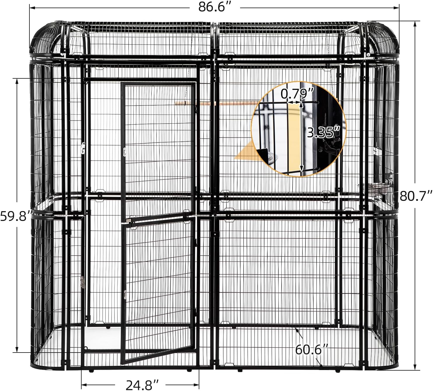 - Need to Assemble - The cage comes with three separate packages. Overall Size: 86.5”L x 60.5”W x 80.39”H;Door size: 59.8"H X 24.8"W