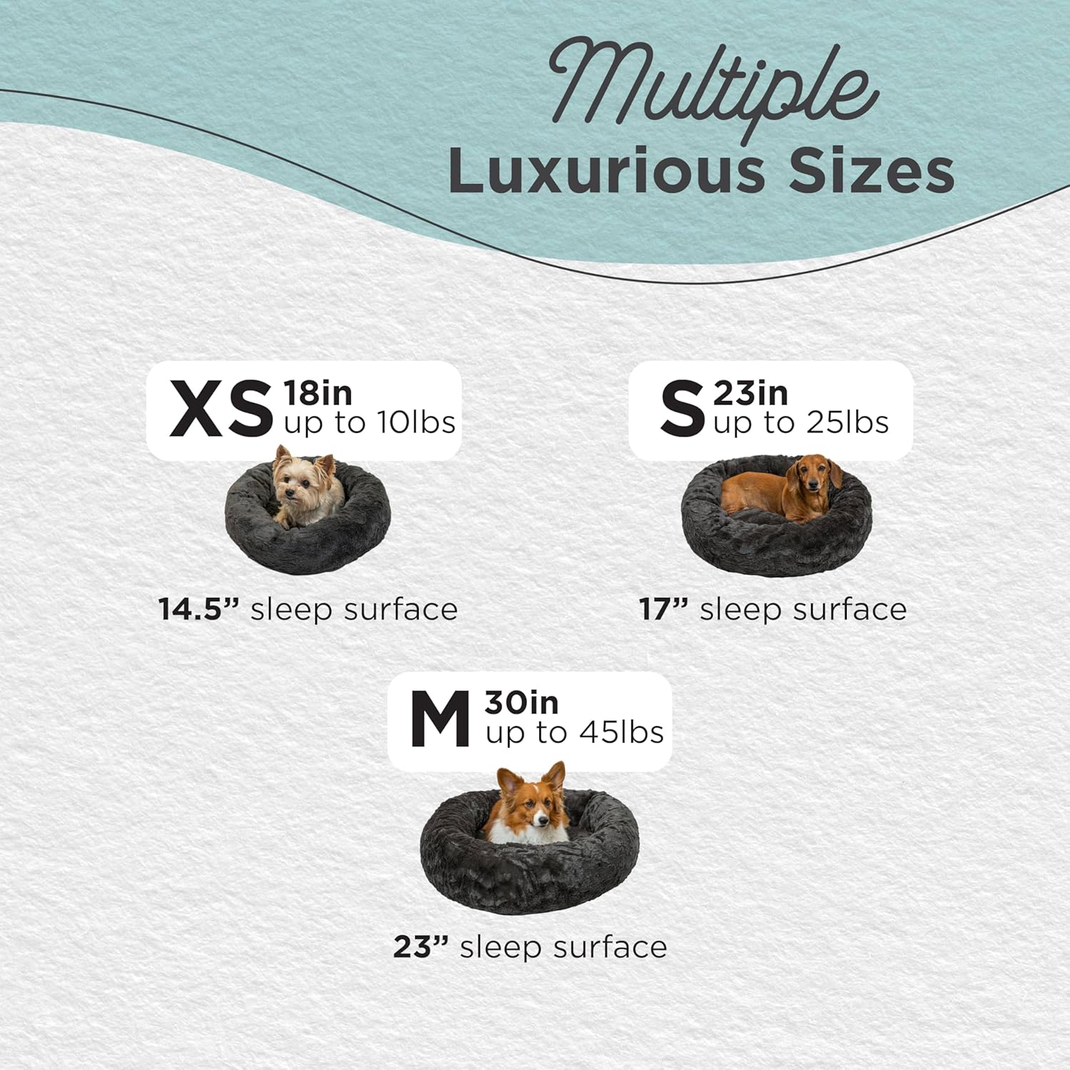 Best Friends by Sheri Original Calming Donut Dog and Cat Bed, Lux Faux Fur, Mink Dark Gray, (30in x 30in) - Anxiety Relief for Pets Up to 45 lbs