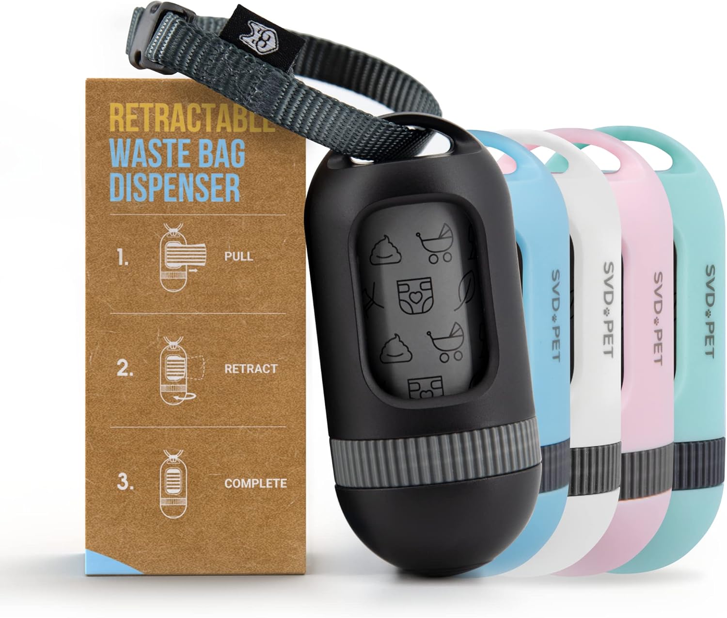 - INCLUDES 15 WASTE BAGS: The box contains 15 (9"x13") large waste bags. The bags are leak-proof and easy to open. The waste bag dispenser works best with the SVD.PET waste bags. The dispenser is specially designed to work with paper-core waste bags. The plastic-core waste bags would fit in the dispenser but the retractable feature may not function smoothly.