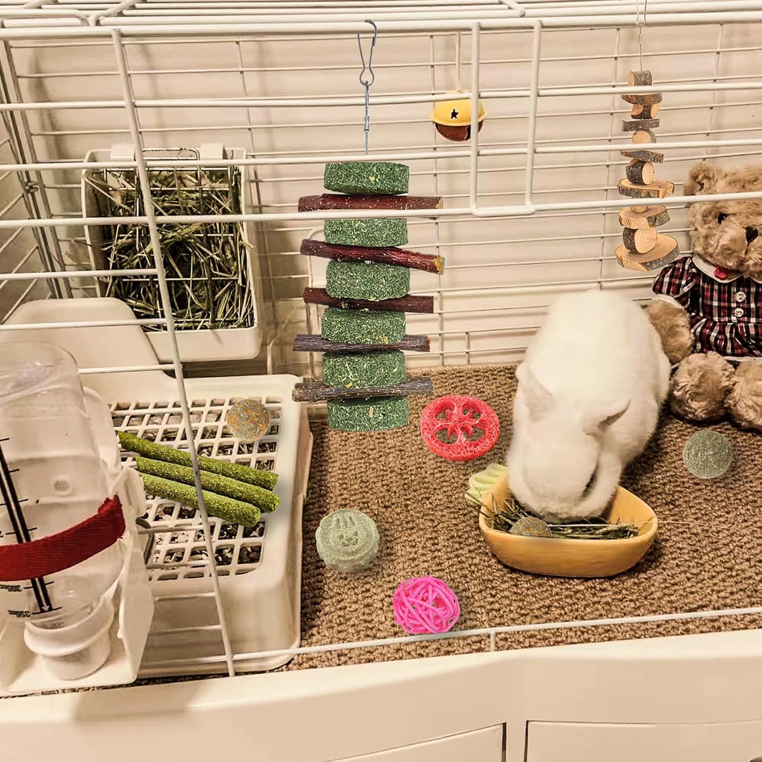 - 【WIDE USES 】These bunny chew toys can be hang in the cages with hooks,fit for rabbits,bunny, hamsters, guinea pigs, squirrel, rabbits,chinchillas, parrot,, providing more fun for your pets.