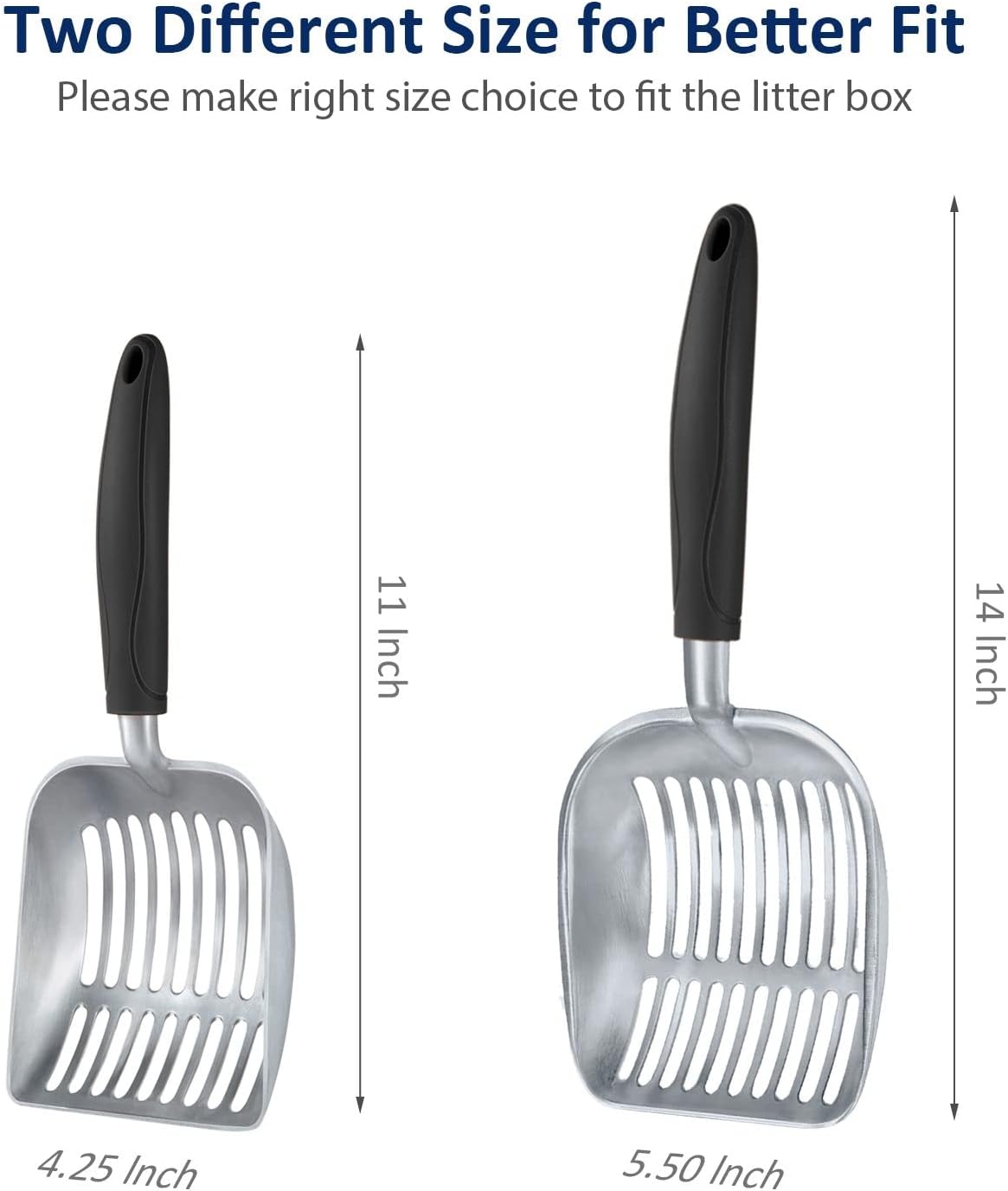 - [Functions]: The sharp edge helps to loosen clumps. The sifter area holds wet clumps and lets clean litter pass through easily. The long handle keeps you away from cat’s waste. It is designed to keep litter box clean and save you loads of cat litter.