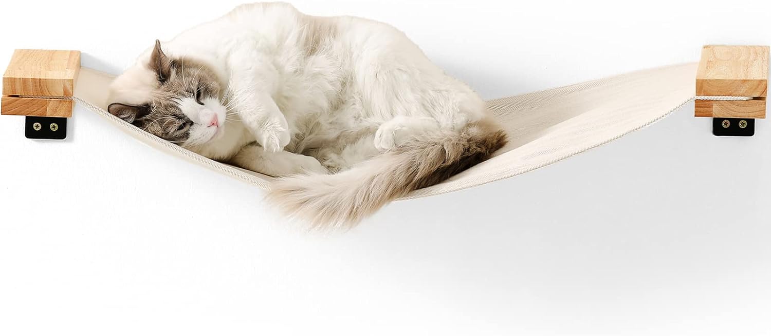 - CAT DREAM PLAYGROUND - A stylish new cat furniture, this hammock attaches directly to the wall. It provides a vertical space for your cat to perch, nap, and watch the ground, also save your space.
