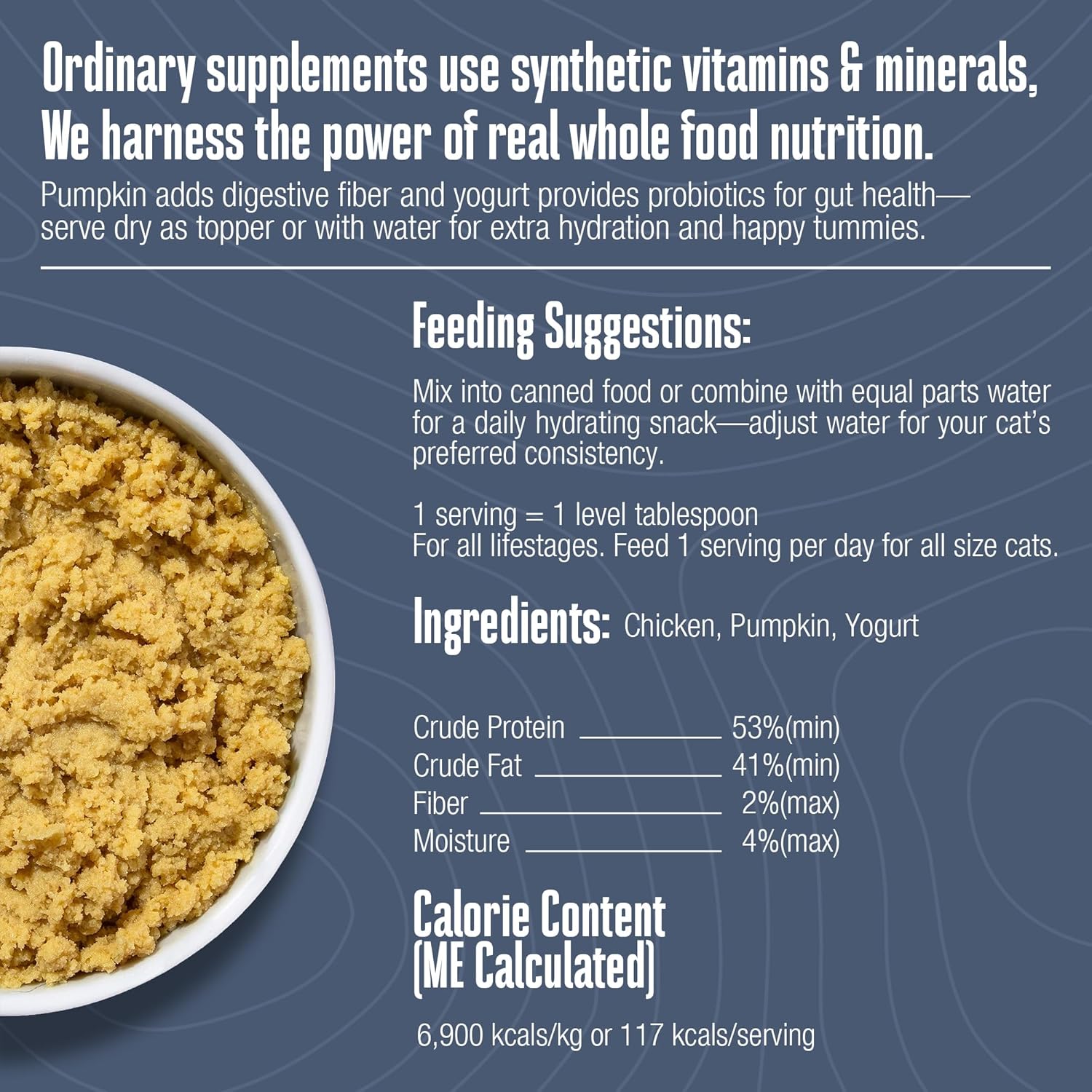 - EASY TO USE CAT DIGESTIVE SUPPORT: No complicated routines here! Just mix our freeze-dried cat food supplement with your cat's favorite canned food or add water for an instant hydrating snack. It’s the ultimate cat supplement that fits seamlessly into your daily routine while keeping your kitty happy.