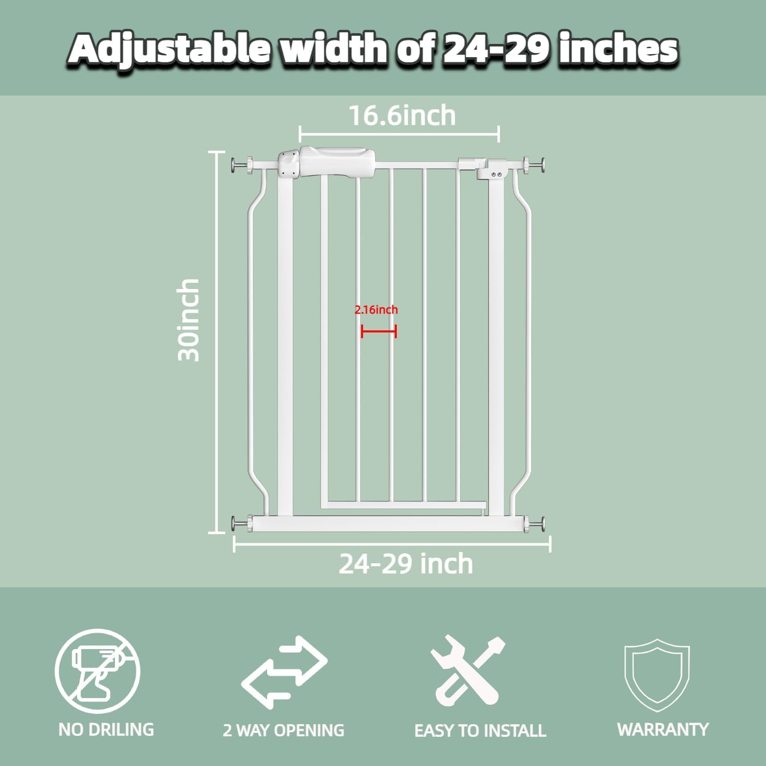 - 【GREAT FOR MOST OPENINGS】Our white gate is suitable for different doors! Choose for openings between 24"-71.65".We have different baby gates sizes,it doesn't include all extensions,the extension which you received denpends on your door opening.Whether your dooway is wide or narrow ,you can find the suitable baby gate or pet gate.And our large walk thru gate makes it easier to walk when holding the baby.