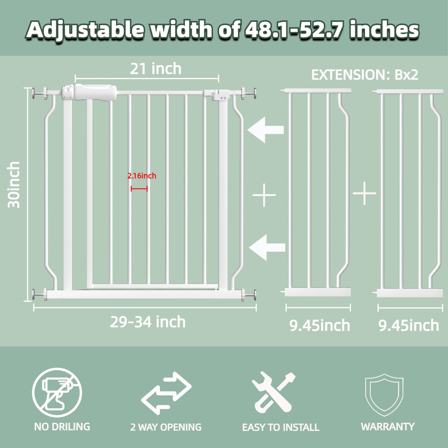 - 【GREAT FOR MOST OPENINGS】Our white gate is suitable for different doors! Choose for openings between 25"-76.37".We have different baby gates sizes,it doesn't include all extensions,the extension which you received denpends on your door opening.Whether your dooway is wide or narrow ,you can find the suitable baby gate or pet gate.And our large walk thru gate makes it easier to walk when holding the baby.