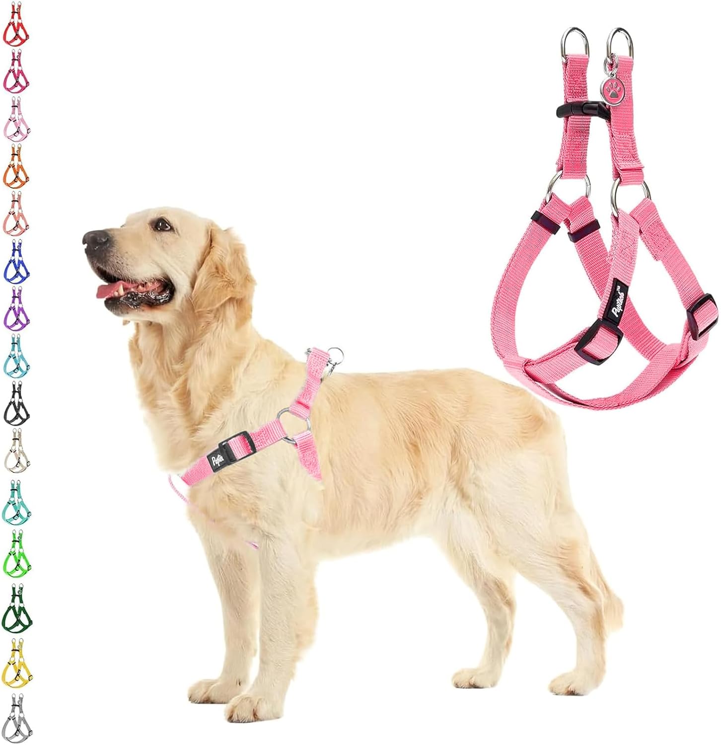 - [Durable & Comfortable Material] - High-quality nylon fabric with high-density webbing to add durability. The webbings have been widened, and the surface is very smooth, so the harness's comfort will be better. Your dog will enjoy the daily walk in this comfortable dog harness!