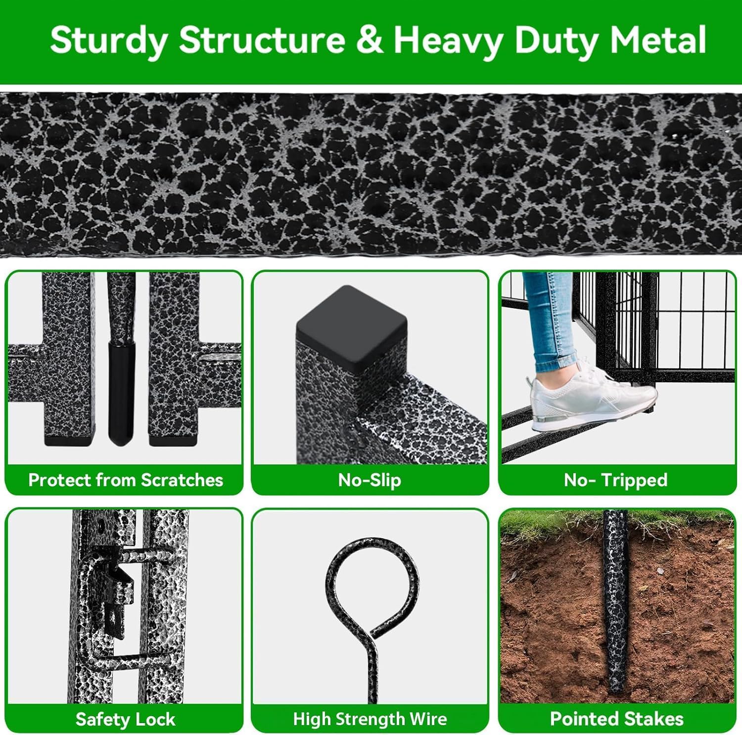 • 【Sturdy Structure & Stable Ground Stakes】Kfvigoho metal stakes are designed round top, which can be pounded into the ground for greater stability, this dog fence with sturdy structure, so dogs can't knock it down and keep them confined in a safe area, the pet pen works great for small, medium and large dogs and rabbits, ducks, turtles etc