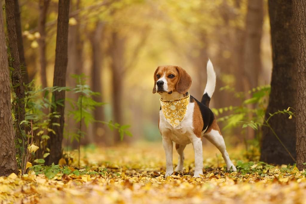 Lionet Paws Flower Dog Bandana,Fabric Yellow Dogs Kerchief for Small Medium Large Dogs,Dog Cotton Triangle Bibs Scarf for Girl Boy