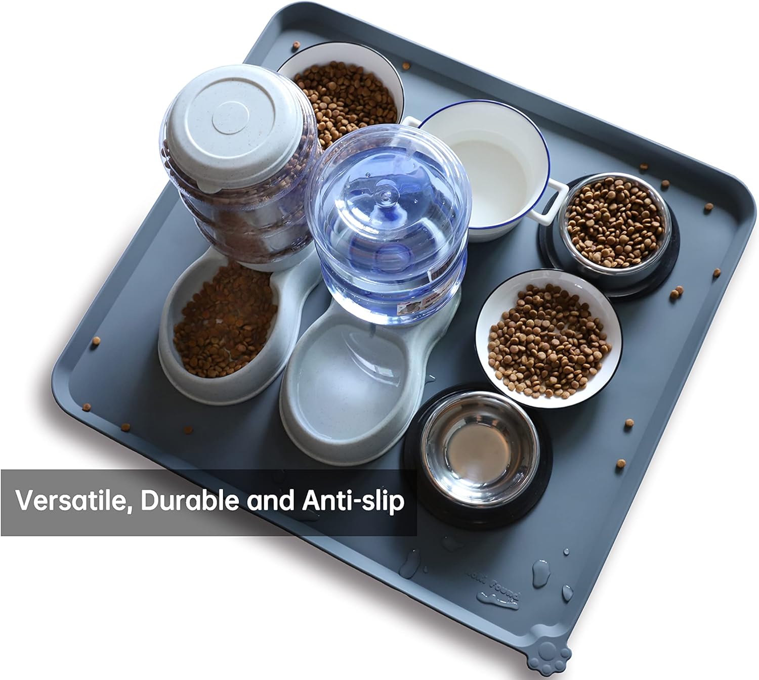 - Extra High raised outer lip prevents food, water and treats from spilling onto your clean floors! Please refer to measurements for size.No more messy spills on floor again.