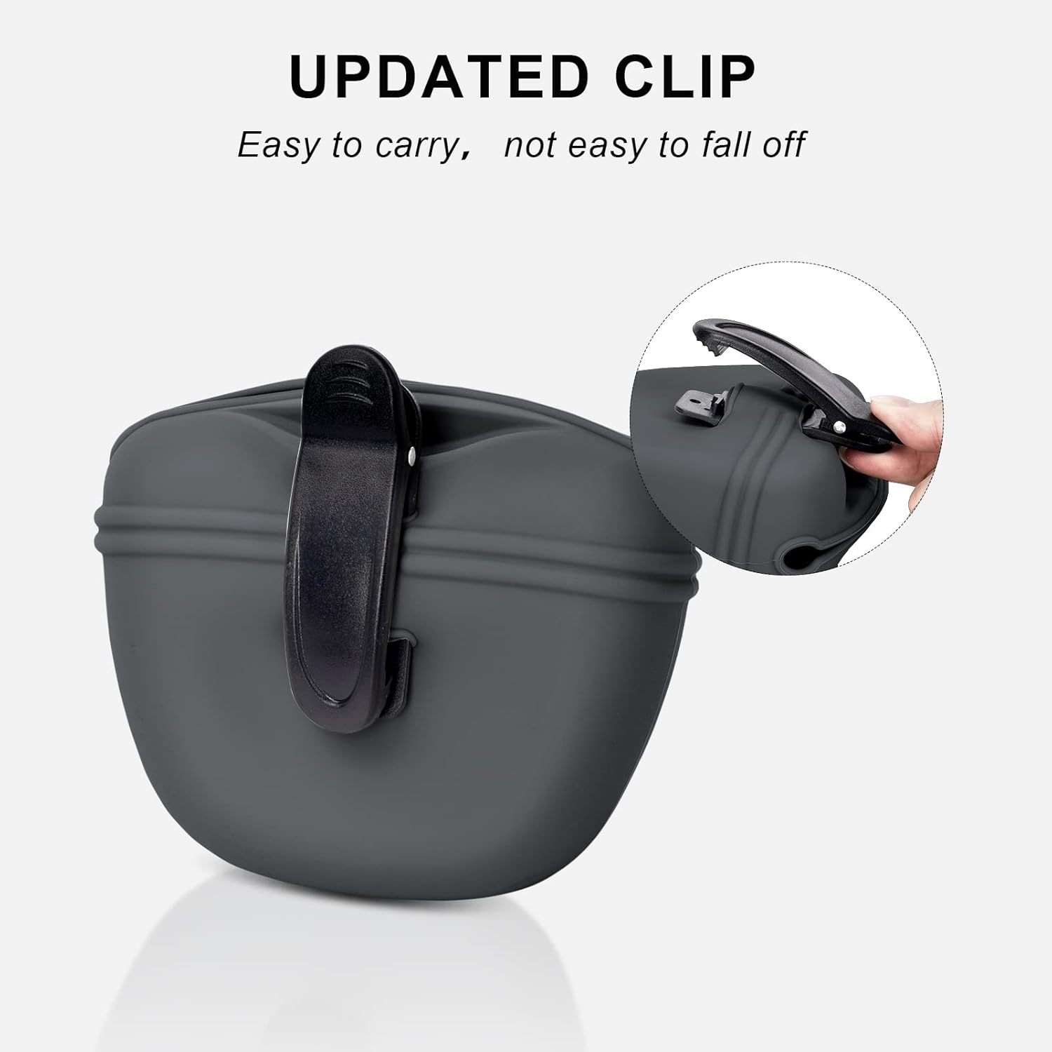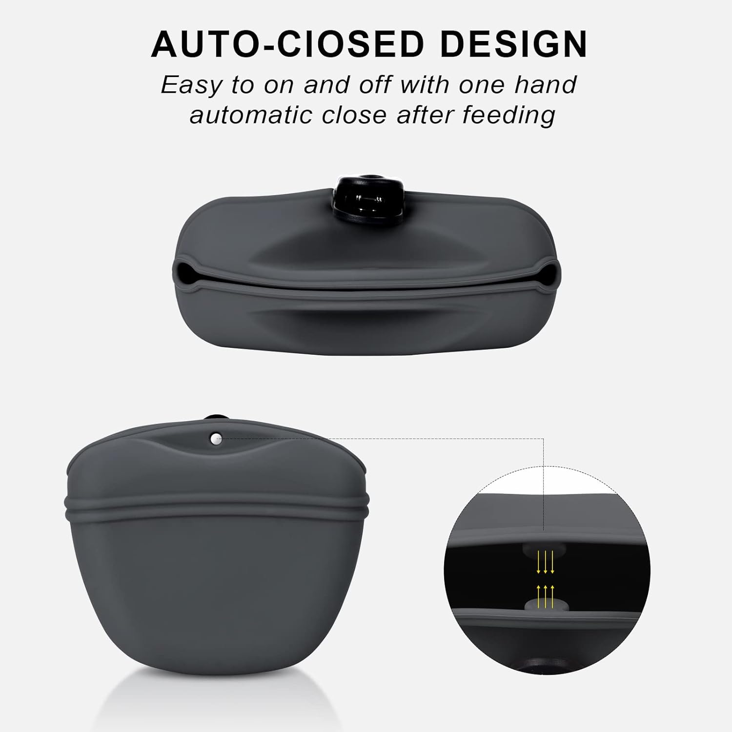 • ๐Ÿ•Silicone Dog Treat Pouch๐Ÿ• - The silicone dog treat pouch is made of food grade silicone,it can contact dry and wet food directly,safe and healthy. Itโ€™s easy to on and off with one hand, automatic close after feeding.With upgrated clip,It is easy to carry,not easy to fall off.Dish washer safe and easy to clean,The large opening design and soft silicone material make the pet pouch easy to reverse to clean the inner easily and thoroughly.