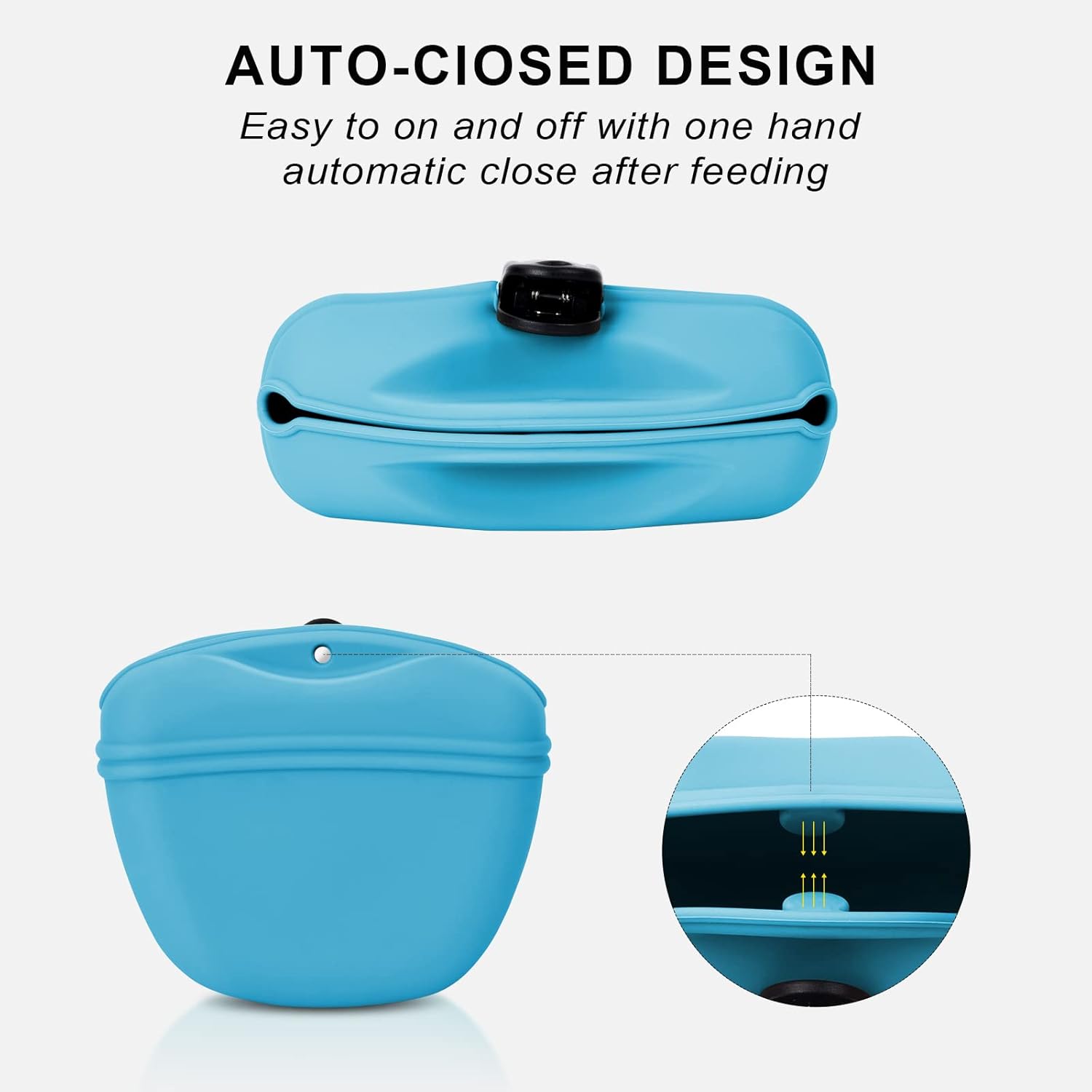 • ๐Ÿ•Silicone Dog Treat Pouch๐Ÿ• - The silicone dog treat pouch is made of food grade silicone,it can contact dry and wet food directly,safe and healthy. Itโ€™s easy to on and off with one hand, automatic close after feeding.With upgrated clip,It is easy to carry,not easy to fall off.Dish washer safe and easy to clean,The large opening design and soft silicone material make the pet pouch easy to reverse to clean the inner easily and thoroughly.