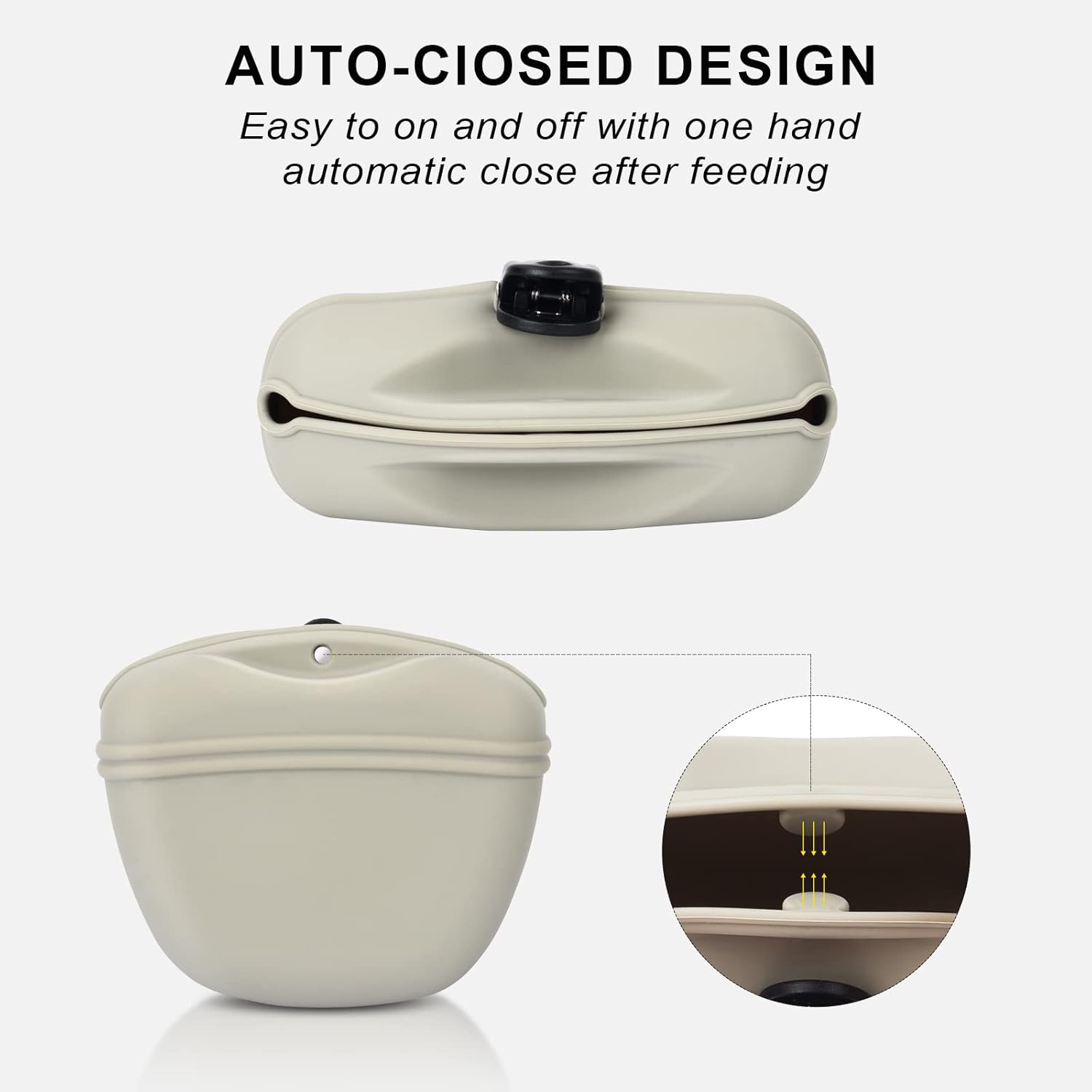 - ๐Silicone Dog Treat Pouch๐ - The silicone dog treat pouch is made of food grade silicone,it can contact dry and wet food directly,safe and healthy. Itโs easy to on and off with one hand, automatic close after feeding.With upgrated clip,It is easy to carry,not easy to fall off.Dish washer safe and easy to clean,The large opening design and soft silicone material make the pet pouch easy to reverse to clean the inner easily and thoroughly.