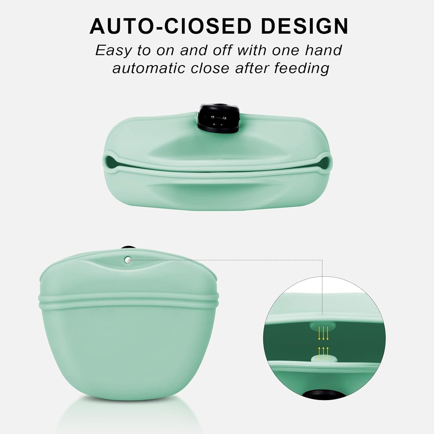 - ๐Silicone Dog Treat Pouch๐ - The silicone dog treat pouch is made of food grade silicone,it can contact dry and wet food directly,safe and healthy. Itโs easy to on and off with one hand, automatic close after feeding.With upgrated clip,It is easy to carry,not easy to fall off.Dish washer safe and easy to clean,The large opening design and soft silicone material make the pet pouch easy to reverse to clean the inner easily and thoroughly.