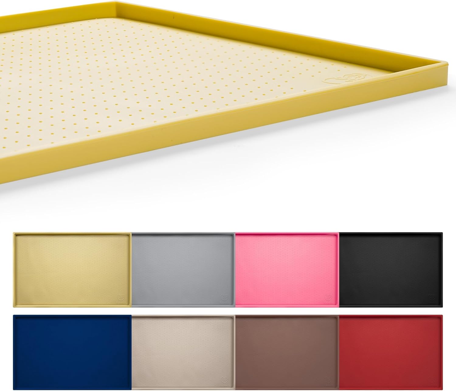 - EXTRA-TALL LIP PREVENTS SPILLS: Super high outer lip (0.8” raised edge) keeps all the mess contained on the doggie placemat and away from your floor. Anti skid surface prevents dog bowls from moving. Use this cute waterproof mat under pet food bowls for dogs, water dishes, pet fountains, automatic feeders, feeding stations to protect your floors.